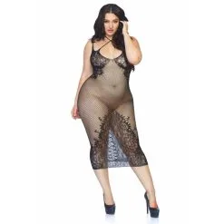 ROBE MI MOLLET RÉSILLE ET DENTELLE GDE TAILLE