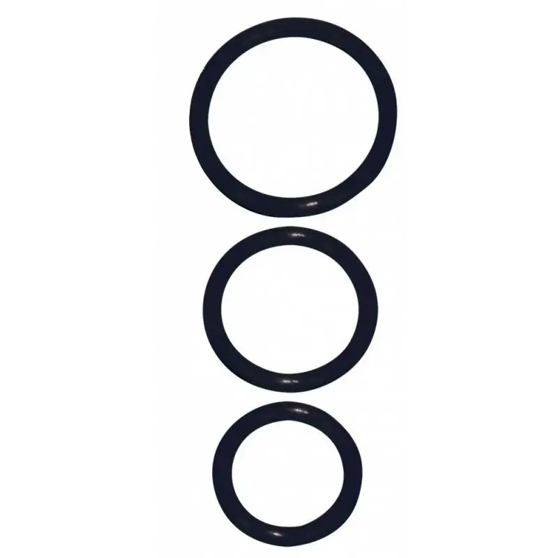 Set de 3 cockring en silicone noir extensibles avec des diamÚtres différents.