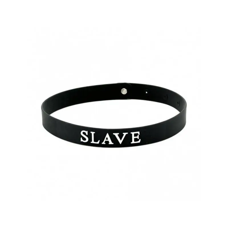 Ecriture « SLAVE » en relief blanc sur le devant.
