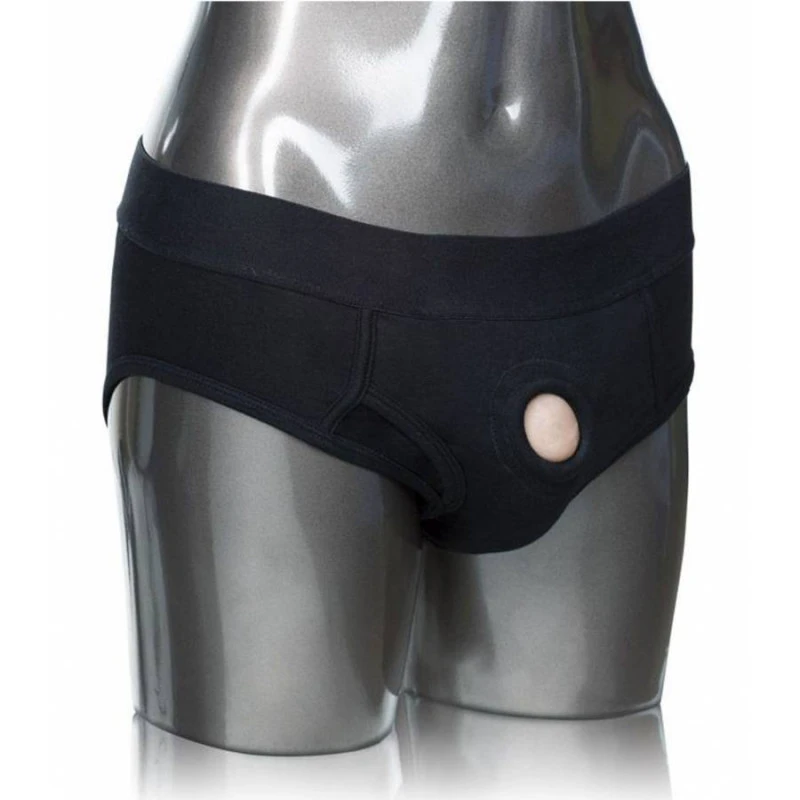 Cet accessoire est un slip conçu pour soutenir un gode ou une prothèse de pénis.