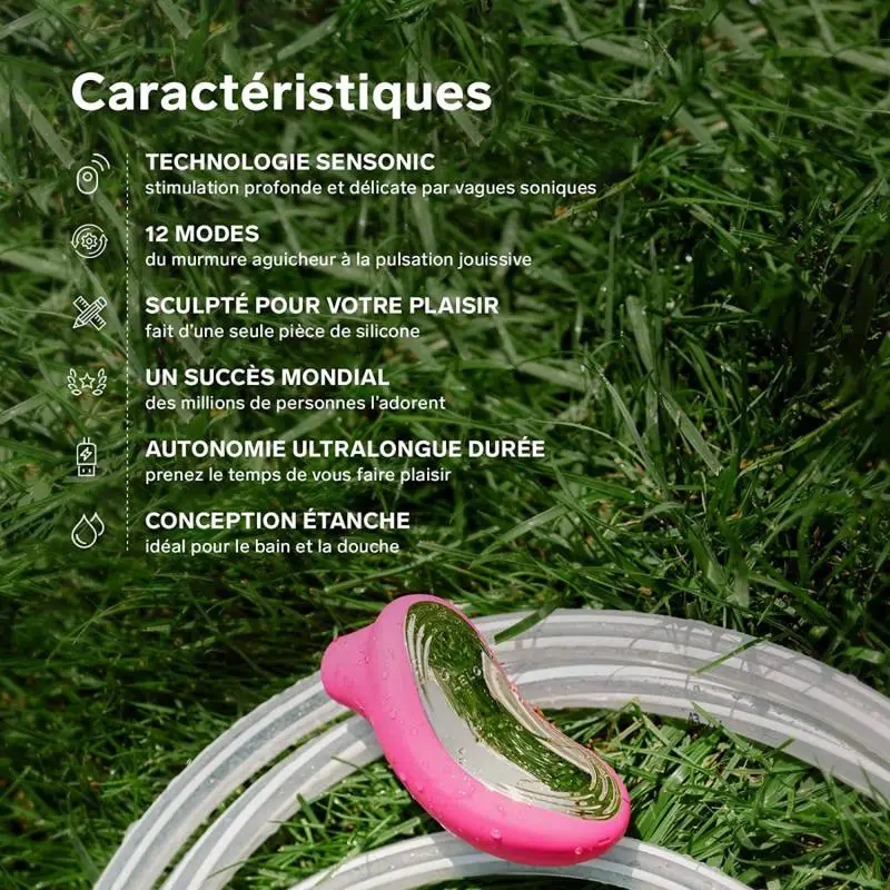 Il diffuse des vagues et pulsations soniques pour stimuler tout le clitoris, et pas uniquement la partie externe que vous pouvez voir et toucher. C’est la technologie Sensonic.