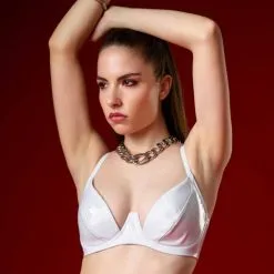 Patrice Catanzaro et Dèmonia vous proposent ce soutien-gorge en vinyle blanc brillant pour un effet sexy avec une mise en valeur de votre poitrine. Disposant d’un excellent maintien et d’un très léger rembourrage. Son décolleté vous offrira un joli galbe.