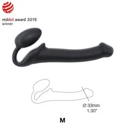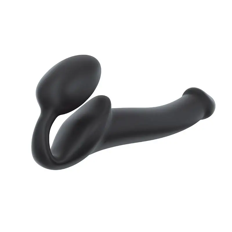Le Gode « Bendable Strap-on » de la marque Strap-On-Me joue le rôle d’un gode ceinture sans harnais pour une utilisation en duo avec une double pénétration vaginale/vaginale ou vaginale/anale.