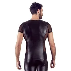 T-SHIRT WETLOOK+VOILE FAÇON MOTARD