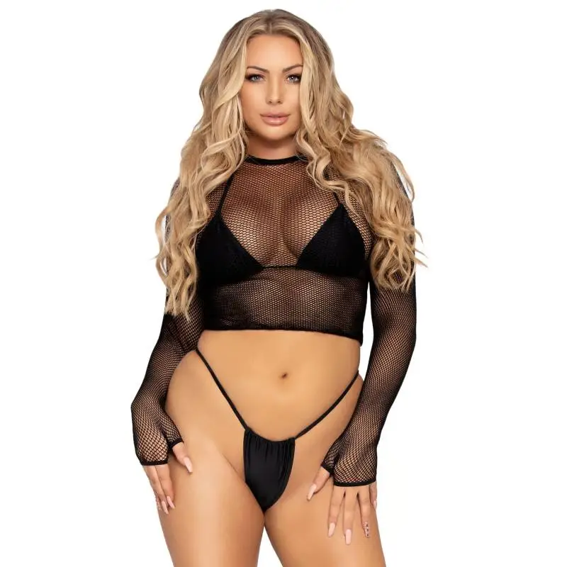 Le haut court en résille avec manches longues et trou pour le pouce est le choix parfait pour toutes les personnes qui veulent se sentir sexy. Ce haut court s’associe parfaitement à des vêtements d’extérieur, comme une jupe en cuir ou un pantalon moulant.