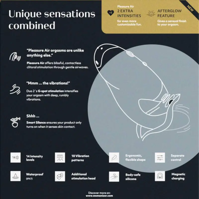 En somme, le Womanizer Duo 2 est un choix de premier ordre pour les femmes Ă la recherche d’une expĂ©rience sexuelle intense, personnalisable et de qualitĂ© supĂ©rieure.